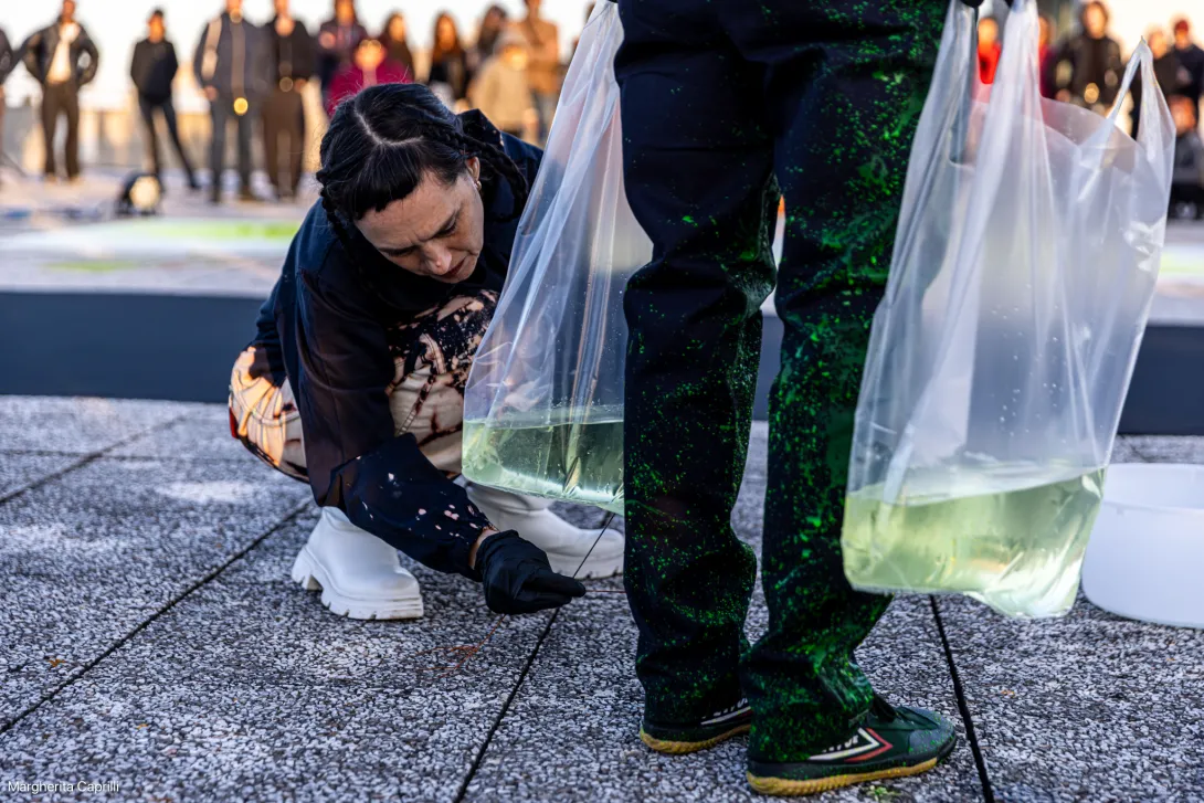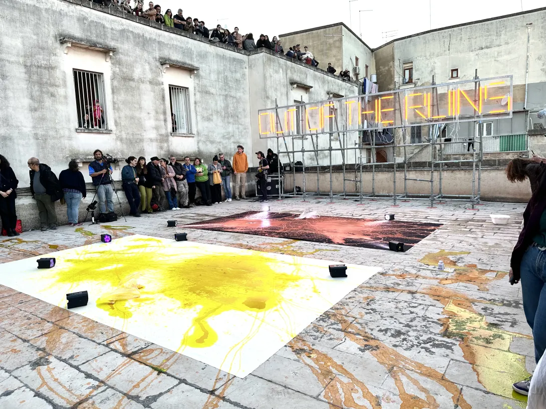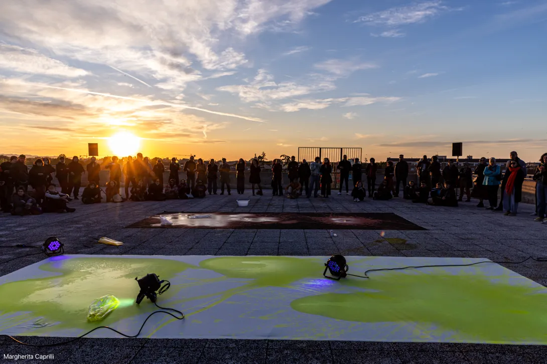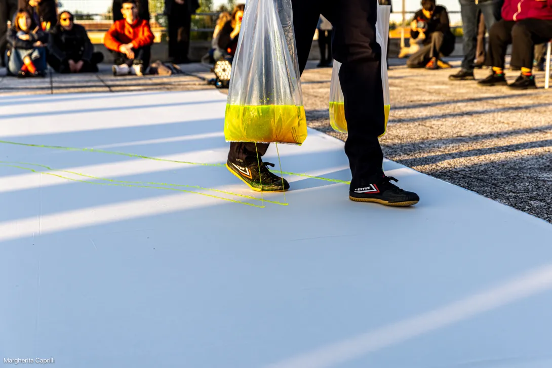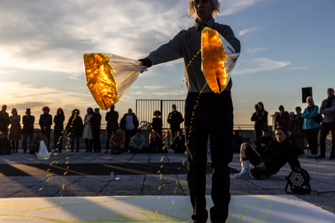 thefutureisNOW? is a performative action born within the Flu水o project, spreading across different spaces and contexts, rewriting an uncontrollable liquid score each time.